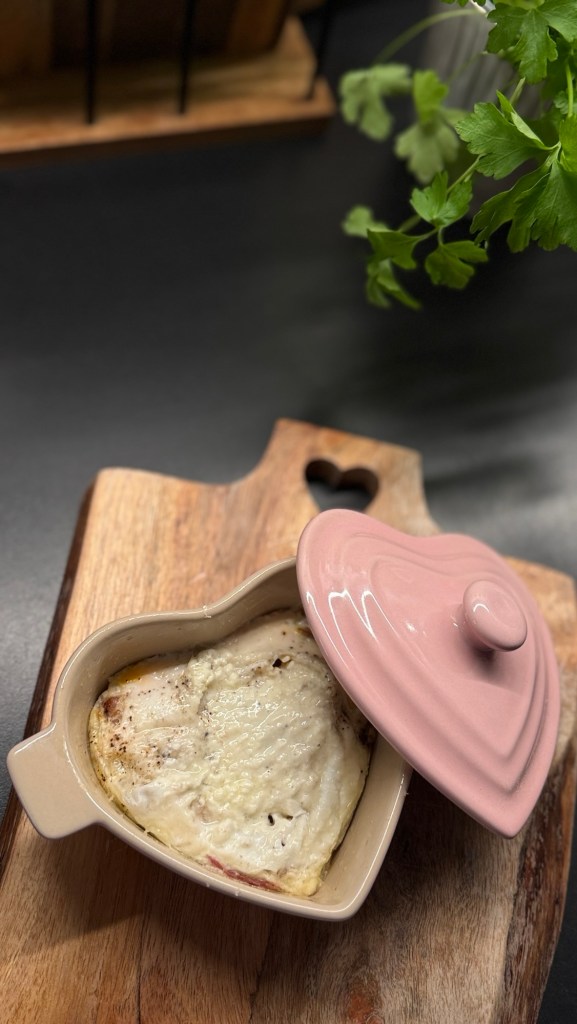 Ouăle cu bacon la cuptor, în ramekin de inimă, sunt un mic dejun simplu, rapid și plin de savoare. Gustul cremos al ouălor se potrivește perfect cu baconul crocant, iar forma de inimă face totul să pară și mai special. Un preparat cald, reconfortant și perfect pentru diminețile în care vrei ceva delicios fără prea mult efort.