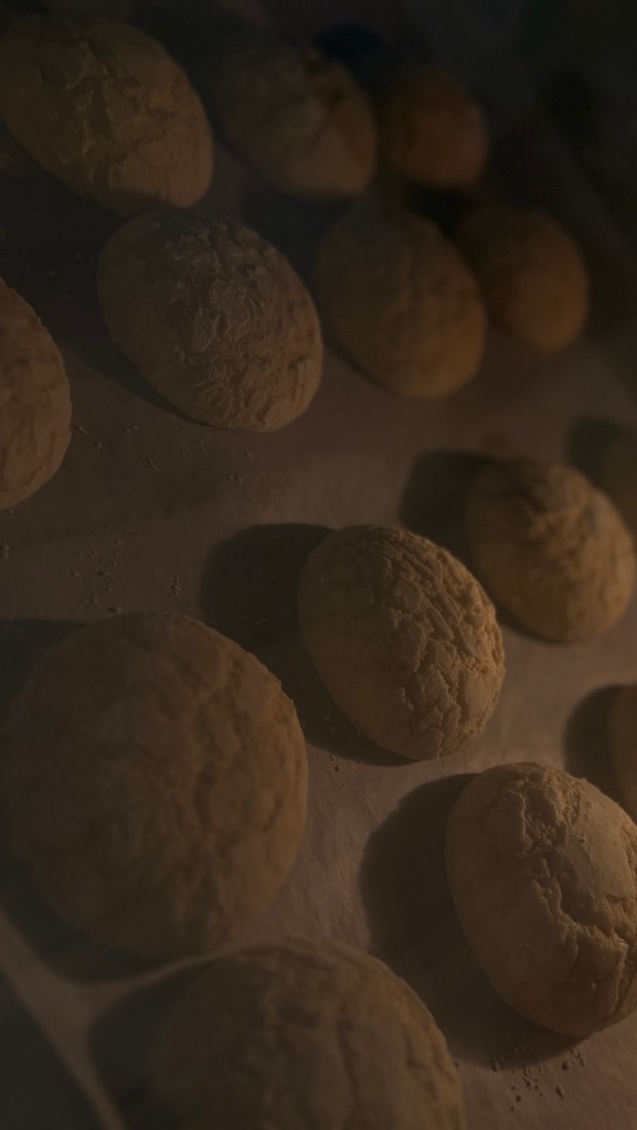 Se servesc după ce s-au răcit complet, ca să rămână frumos crăpați și ușor crocanți la exterior.